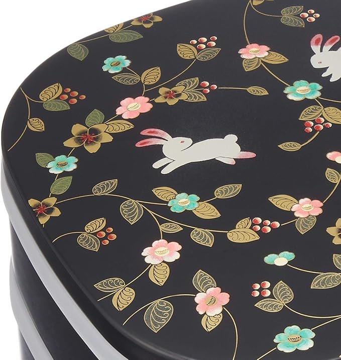 ミタニ 山中漆器 山中塗 重箱 花の小路 7.0くつわ二段オードブル(タッパ・小鉢付) 黒 M15402