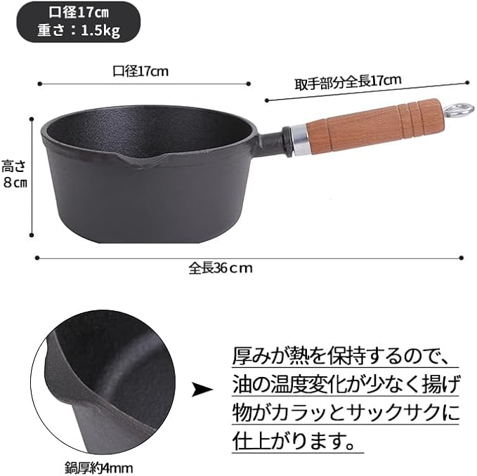 Desirable 鋳物 揚げ鍋 炒め鍋 IH対応 鋳鉄製 非シリコン塗装 シリコーン塗装無し (17cm)