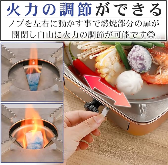 小型コンロ 固形燃料使用 火力調整可能 料理 アウトドア キャンプ 災害 停電 車中泊 コンパクト 一人鍋