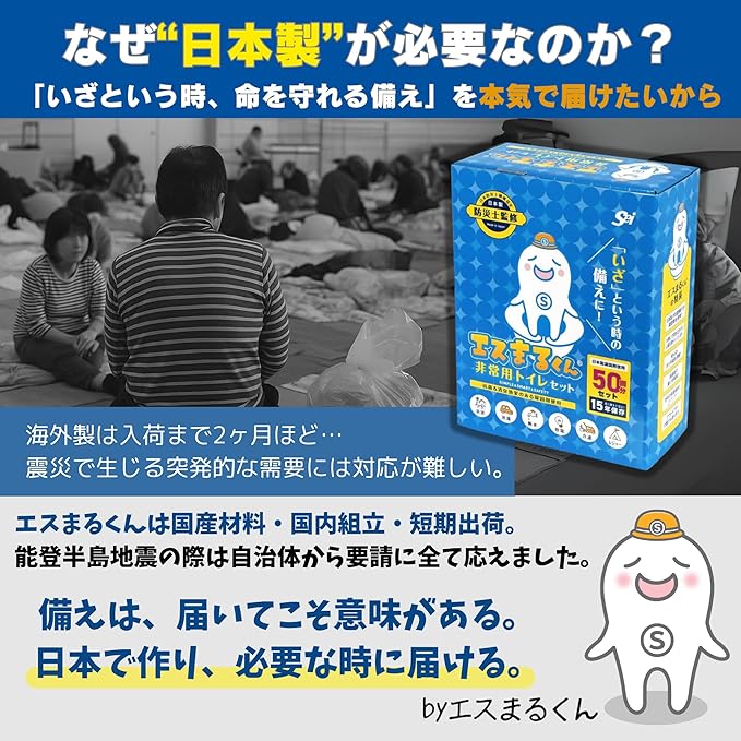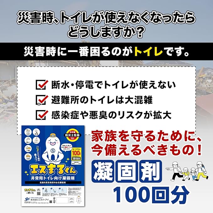 【安心の日本製凝固剤使用】 エスまるくん 凝固剤 簡易トイレ 携帯トイレ 非常用トイレ 災害用トイレ 15年保存
