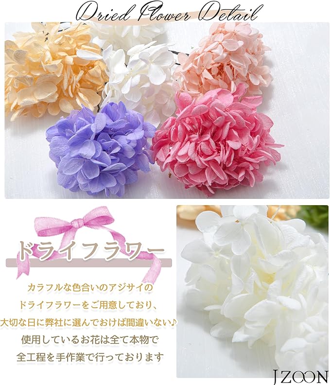 髪飾りのドライフラワーは天然素材ので、サイズや形や色味が商品異なる可能性があります。また、モデルの頭部と生身の頭はサイズが少し違いますので、購入前にサイズをご確認ください。