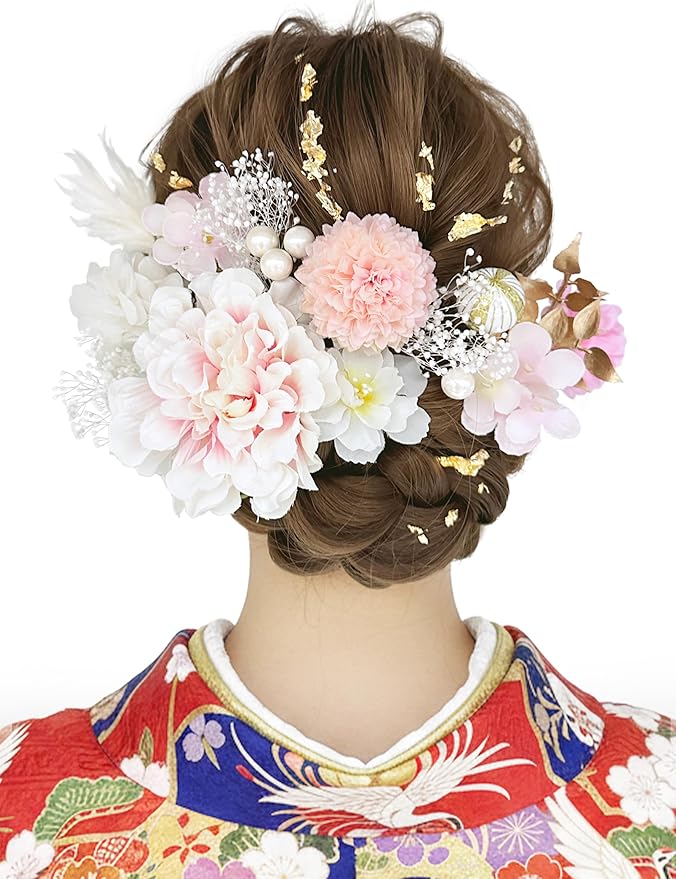 【多様なシーンで活躍】 成人式という特別な日に、晴れやかな装いをより美しく引き立ててくれるヘアアクセサリー。 やさしい色合いと繊細なデザインが、振袖姿に上品な華やかさを添えます。 成人式はもちろん、卒業式や結婚式など、大切な日にもそっと寄り添い、あなたらしい輝きを演出します。