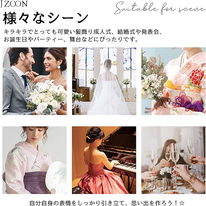 【日常的にもOK】結婚式や発表会などのイベントにお勧めです。和装(振袖・着物・浴衣・袴など)に合わせてご利用いただけます。子供から大人までたくさんのお祝いシーン(七五三、卒業式、お正月、お祭り、花火大会、成人式)で繰り返しお使いいただけます。もちろん、日常的にも気軽にご使用いただけます。