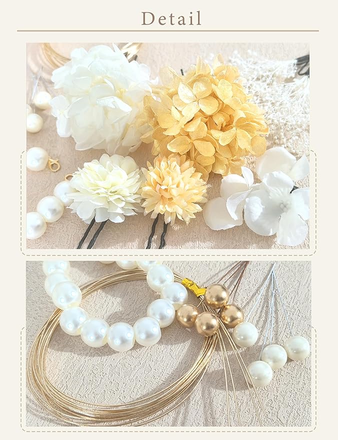 【自由に組み合わせ】花飾り・パール・チェーンなど合計18点がセットになっており、気分やヘアスタイルに合わせて自由にアレンジ可能。自分だけのオリジナルヘアアレンジが楽しめます。