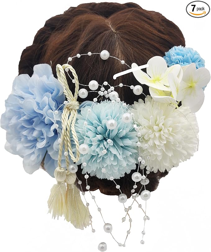 [JZOON] 髪飾り全九色 浴衣 着物 袴 振袖 和装 成人式 結婚式 卒業式 ヘッドドレス ウェディング ヘアアクせサリー 花クリップ レディース 七五三 7点セット