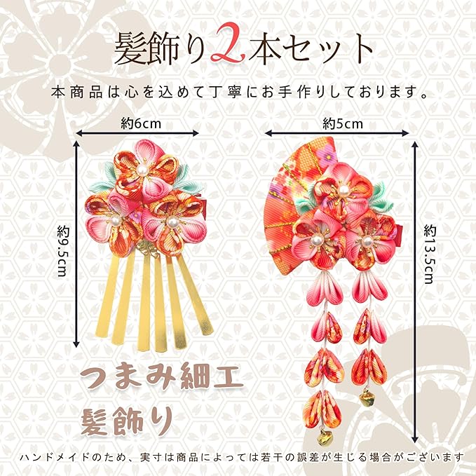 [JZOON] 髪飾り 七五三 髪飾り 2点セット つまみ細工 【9色展開】 成人式 浴衣 袴 着物 振袖 和装 花 卒業式 結婚式 鈴付き 子供 手作り H4600