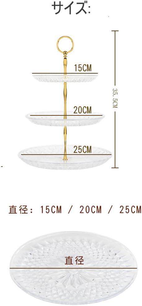 ケーキスタンド 果物収納 お菓子皿 デザートスタンド 3段 展示用 北欧風 透明 結婚式 誕生日 パーティー用 ゴールド