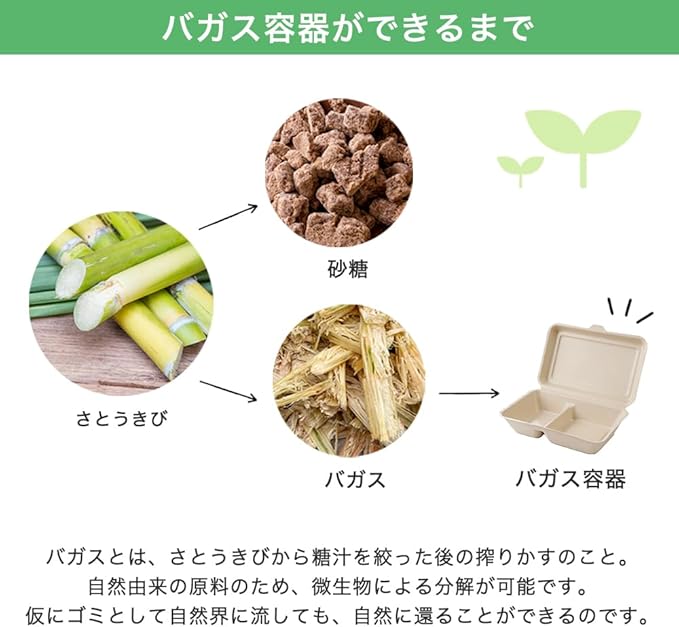 ✅【エコ容器】さとうきびを搾ったあとの繊維からできた、環境にやさしい商品です。