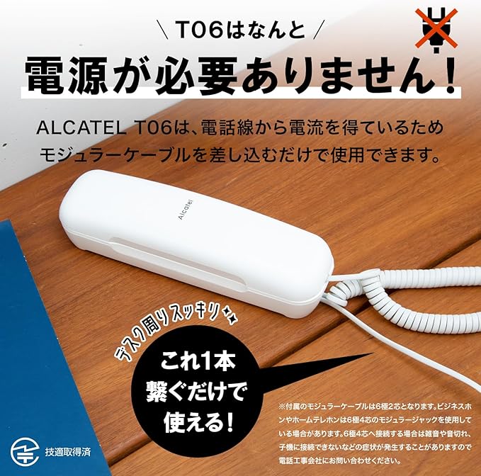 ALCATEL (アルカテル) T06 電話機 シンプル 固定電話機 ビジネスフォン 電源不要 コンパクト 小型 卓上 壁掛け アナログ回線 受付/オフィス/家庭用 ホワイト