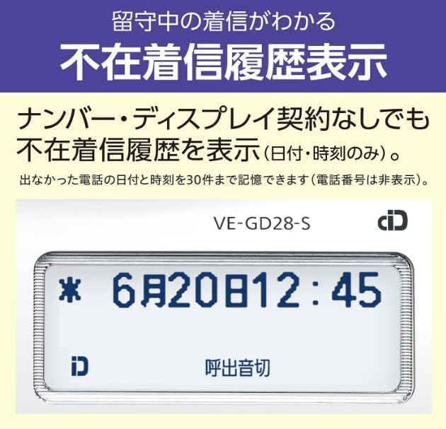 ナンバー・ディスプレイ契約なしでも不在着信履歴を表示(日付・時刻のみ)