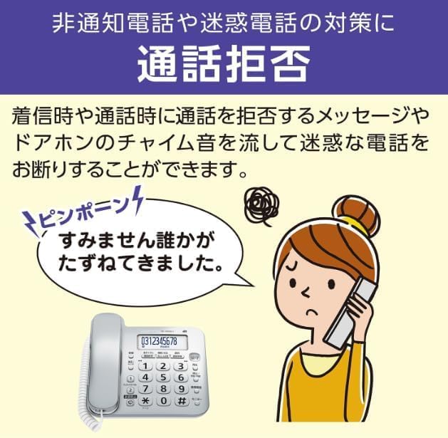 ✅ 呼出音が鳴る前に相手に警告メッセージを流す「迷惑防止」機能搭載