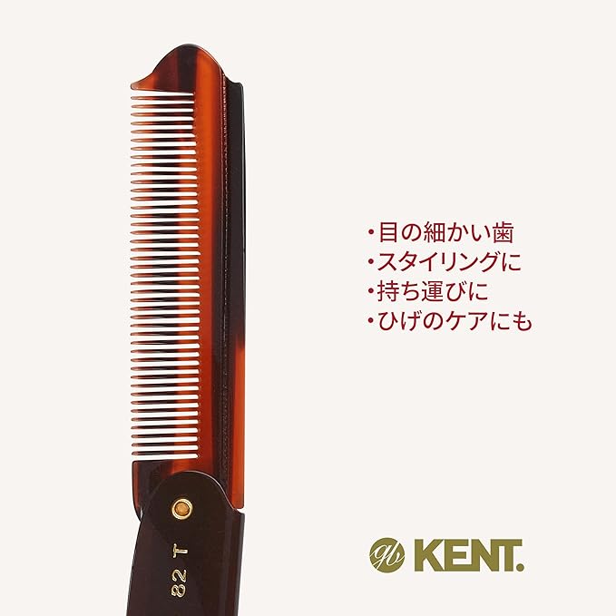 GB KENT ケント 英国王室御用達 高級 ハンドメイドヘアコーム 190mm 折りたたみ ポケットコーム くし 櫛 携帯 持ち歩き 持ち運び コンパクト 天然由来 静電気抑制 サラサラ 細かい歯 82T (クラシックカラー)