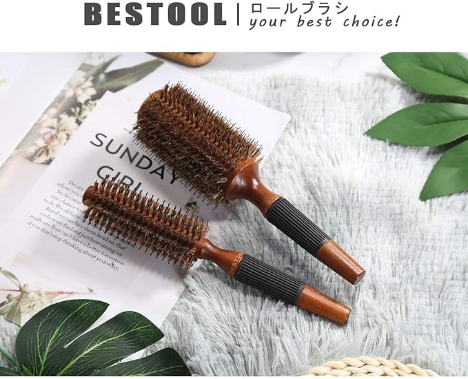 BESTOOL ロールブラシ ヘアブラシ ロール くし 木製 櫛 ヘアケア 高級 コーム レディース メンズ ブロー カール 巻き髪 耐熱 人気 艶髪 美髪ケア(M)
