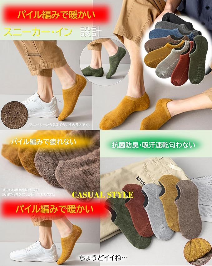 [kuuupiii] 【靴下ソムリエ監修】 スニーカーイン スニーカーソックス フットカバー 深履き 靴下 メンズソックス パイル編み スポーツソックス カジュアルソックス 綿 春夏秋 | etshop