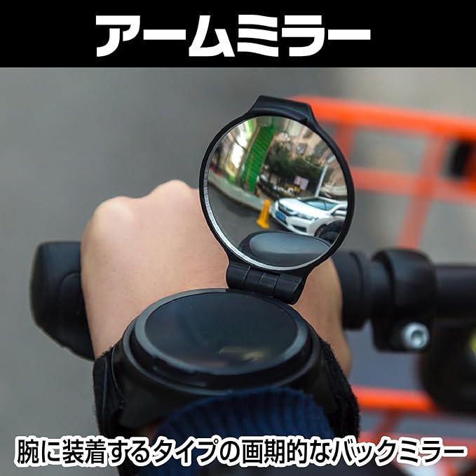 【持ち運びやすさと盗難防止】 自転車に取り付けるタイプのミラーと異なり、手首に装着することで、自転車から離れた際の盗難の心配がありません。また、折りたたみ可能で、持ち運びや収納が簡単です。自転車のルックスを気にする方にも最適なアイテムです。