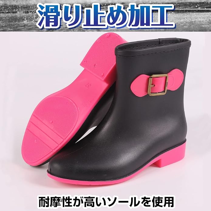 【快適な履き心地&歩きやすい設計】 ヒールの高さは約2.5cmのスクエアヒールを採用し、歩行時の安定感を確保。幅広設計のため、足が疲れにくく長時間の使用にも最適です。足首をしっかりホールドするショートブーツ仕様で、フィット感も抜群。軽量なPVC素材を使用し、柔らかく快適な履き心地を提供します。