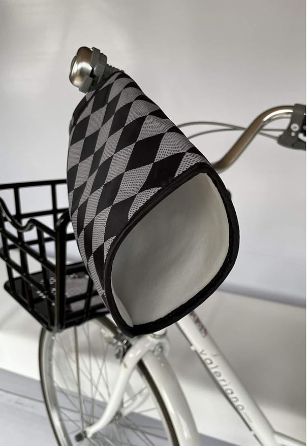 防寒 自転車用ハンドルカバー 黒・グレーチェック柄