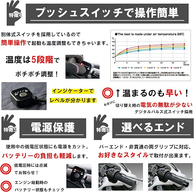 そのような進化の中で、今季は全商品の根本的な見直しをしておグリップヒーター全体に言われている径の太さの問題に取り組みました。また長年販売しているプッシュスイッチタイプに関してもそのスイッチのサイズを見直しております。