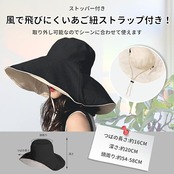 【UV対策に】通気性にも優れており、UVカット効果があるので顔はもちろん首の紫外線対策もバッチリ!夏には帽子が欠かせません、つばが長いので、紫外線をシャットアウトして、顔を全面的に守るだけではなく、より可愛くて見せることができます、つば広の帽子は、小顔効果抜群。