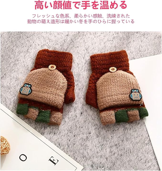 [ZVCXOE] キッズ 手袋 ニット グローブ 子供用 男の子 女の子 ミトンカバー付き 指切り 半指 2 WAY 防寒 赤ちゃん ベビー 冬物 あったか 雪遊び 通園 通学 可愛い | etshop