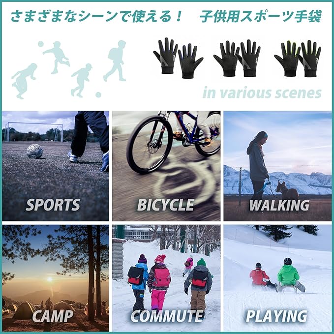 【幅広い用途に使える!】防寒性と操作性が高く、防水性備えているので、通学などの普段使いはもちろん、自転車、サッカー、野球、ゴルフ、テニス、登山、雪遊びなど、様々なシーンで幅広く使える子供用の防寒グローブです。子供たちへのプレゼントにもオススメです。