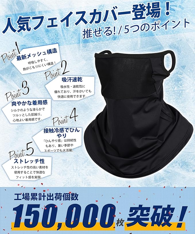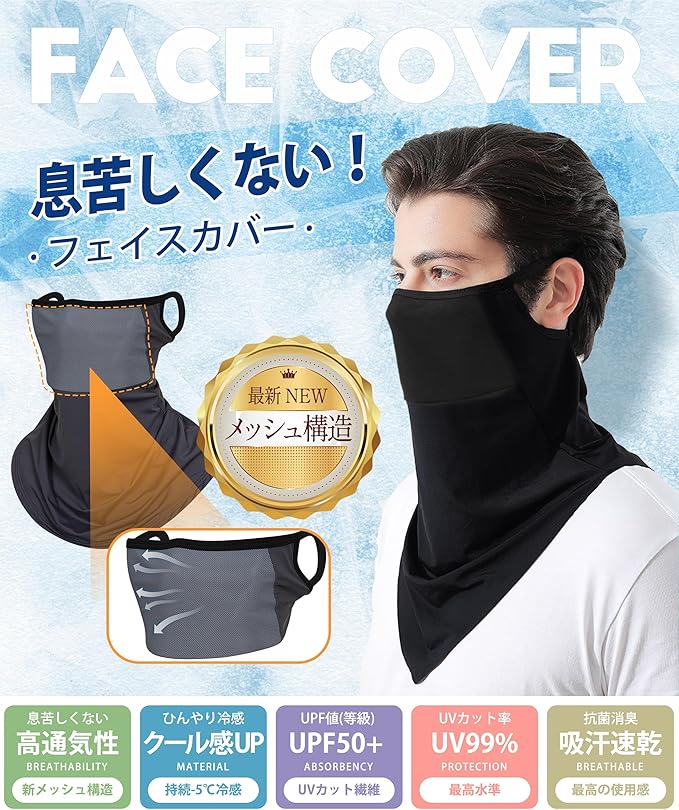 [GAOTEK] 新メッシュ構造 フェイスカバー uvカット 夏用 【UPF50+測定済み・持続-5℃冷感技術・息苦しくない】 ネックガード ネックウォーマー 耳かけ 日焼け防止 持続-5℃冷感技術 防塵 防風 男女兼用 | etshop