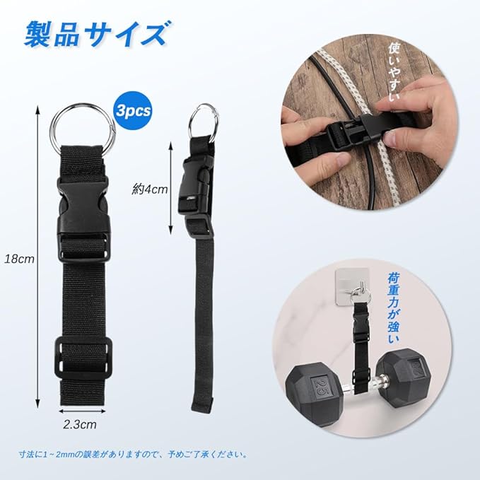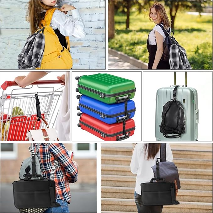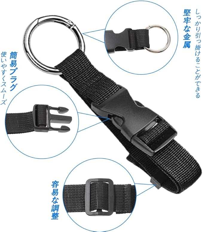 【使いやすい&収納しやすい】リングバックルをバッグベルトやスーツケースに取り付け、ワンタッチバックルを開き、物の厚さに合わせて長さを調節し、しっかりと留めるだけで、物を安定させ、両手を効果的に解放することができます。 【幅広い用途】出張、通勤、旅行、休日の外出など様々な場面で活躍できます。季節の変わり目には、脱いだジャケット、スーツ、ストール、マフラー、手袋、帽子などをバッグ、リュック、スーツケース、またはハンドバッグにかけて、気軽に持ち歩くことができます。