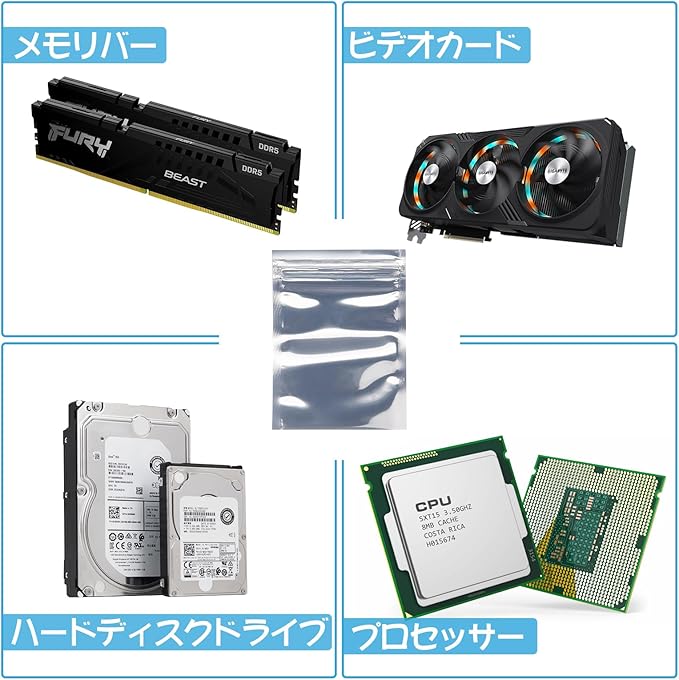 【幅広い用途】ハードディスクの静電防止対策に使用されている ESDシールドバッグです。 ハードディスクやPCパーツ・精密機器の保管、運送時の包装にご利用いただけます。