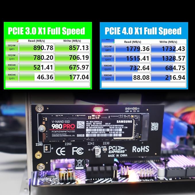 利点と欠点: 利点は、X16スロットを占有する代わりに、マザーボードに空いているPCIE X1スロットを利用できることです。欠点は、PCIe X1の最大帯域幅しか持たないため、PCIe X4のフルスピードに着くできないことである。
