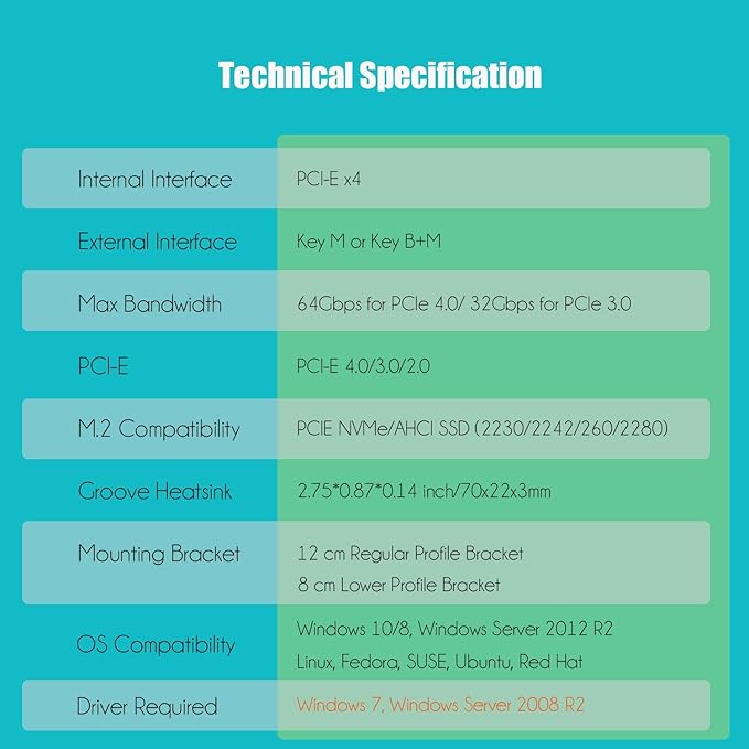 OS互換性: Windows 11/10/8/Linux/Mac OSでプラグ & プレイ(注:Windows 7をサポートしない)。新しいM.2 NVMe SSDは、コンピュータのホストによって認識される前に初期化とフォーマットされる必要があります。