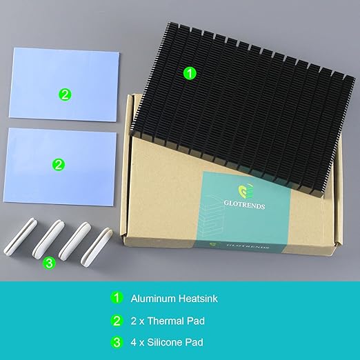 GLOTRENDS アルミニウムヒートシンク(WiFiルーター用)、180x115x15mmアルミボディ、サーマルパッド2枚付属