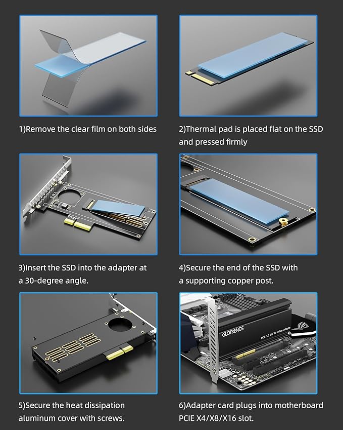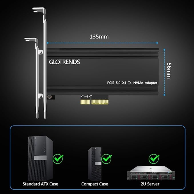 GLOTRENDS PA18 M.2 NVMe - PCIe 5.0 X4アダプタ、M.2 NVMe SSD用、特大アルミニウムヒートシンク、レギュラー/ロープロファイルブラケット (ブラック)