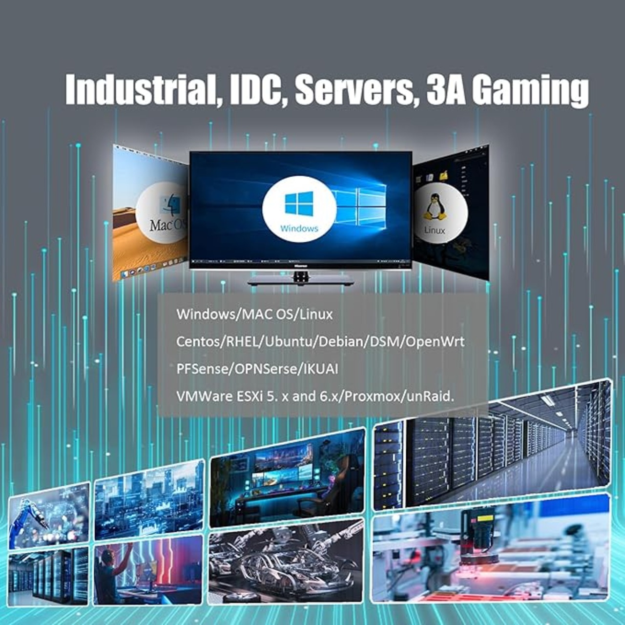 その他のOS互換性:MAC OS/Linux/Centos/RHEL/Ubuntu/Debian/DSM/OpenWrt/PFSense/OPNSerse/IKUAIなど。 (注:OSがネットワークカードを見つけられない場合は、ドライバーのインストールが必要になる場合があります)