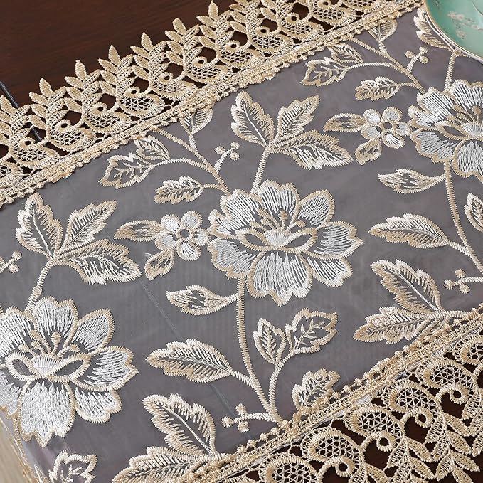刺繍部分の透け感がテーブル本来の色を引き立て、両サイドにあるタッセルがさらに高級感を演出します。
