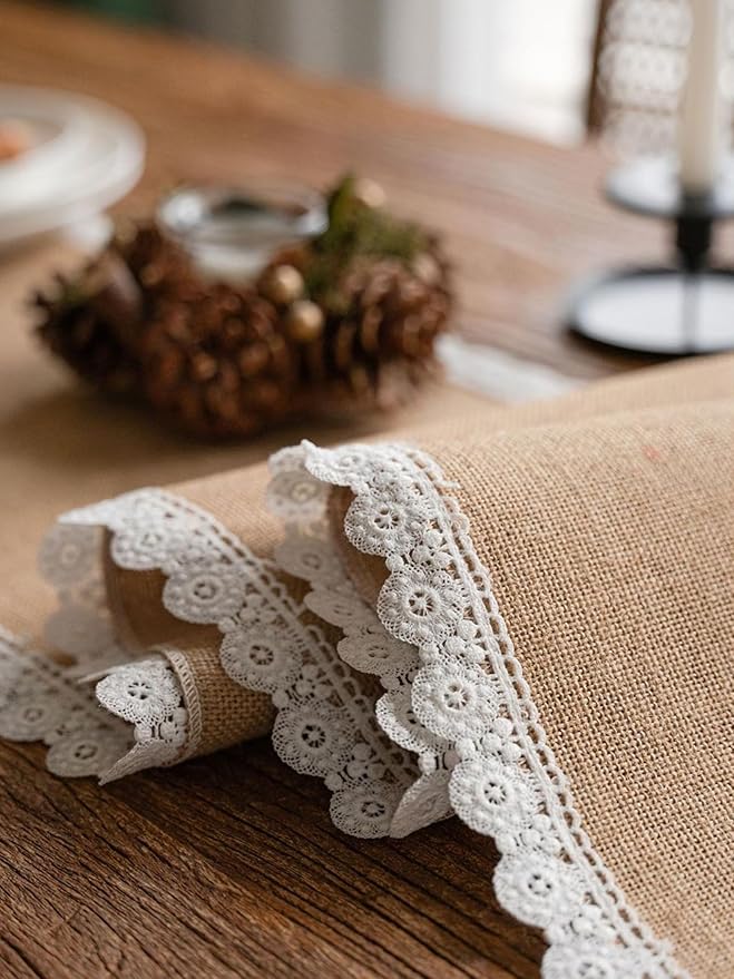 テーブルランナー 黄麻 レース 花柄 刺繍 リネン 無地 北欧 和風 食卓センター 細長い テーブルクロス 120CM (ドット柄)