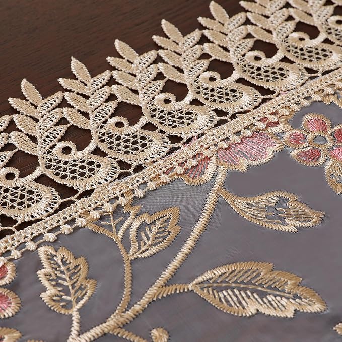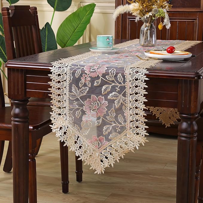テーブルランナー レース おしゃれ 刺繍調 花柄 透け感 アンティーク 北欧風 センタークロス 食卓飾り 40*120cm (ピンクの花, 120)