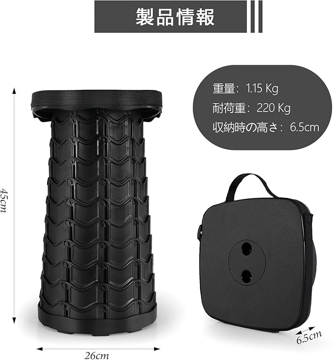 頑丈&安定性:アウトドアでの使用に最適な折りたたみ椅子です。無段階調整が可能で、高品質のPP素材を使用しています。スケールロック設計を採用し、伸縮折りたたみ椅子の重量はわずか1.15 kg。高さは6.5 cmから45 cmまで調節可能で、耐荷重は220 kg。子供から大人まで、どっしり座って安心して使えます。