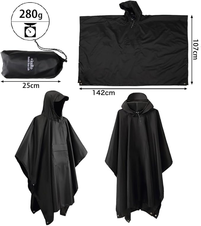 [AdLife] レインポンチョ レインコート ポンチョ メンズ レディース 自転車 アウトドア 軽量 コンパクト かっぱ 3WAY 原付 雨具 ポケット付き マット テント キャノピー 防風 防水 無地 収納袋付き | etshop