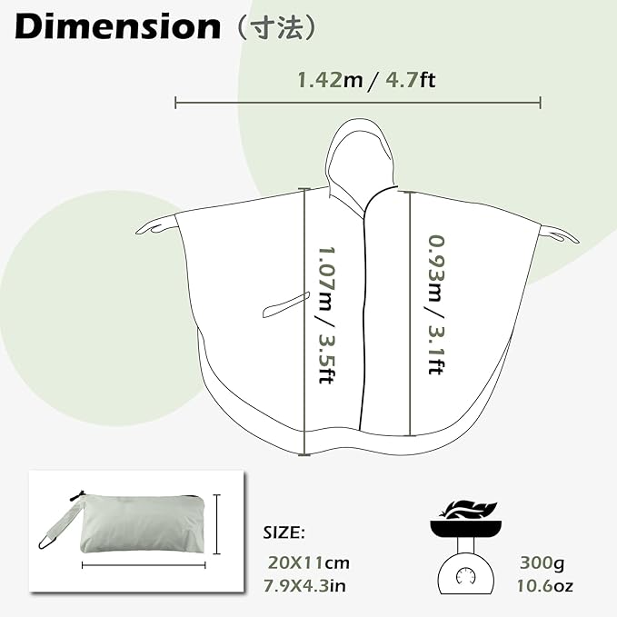 ✅【仕様】素材:ポリエステルタフタ コーティング:210Tポリエステルタフタ 平置きサイズ:107x142cm 収納サイズ:20x11x7cm 重量:300g