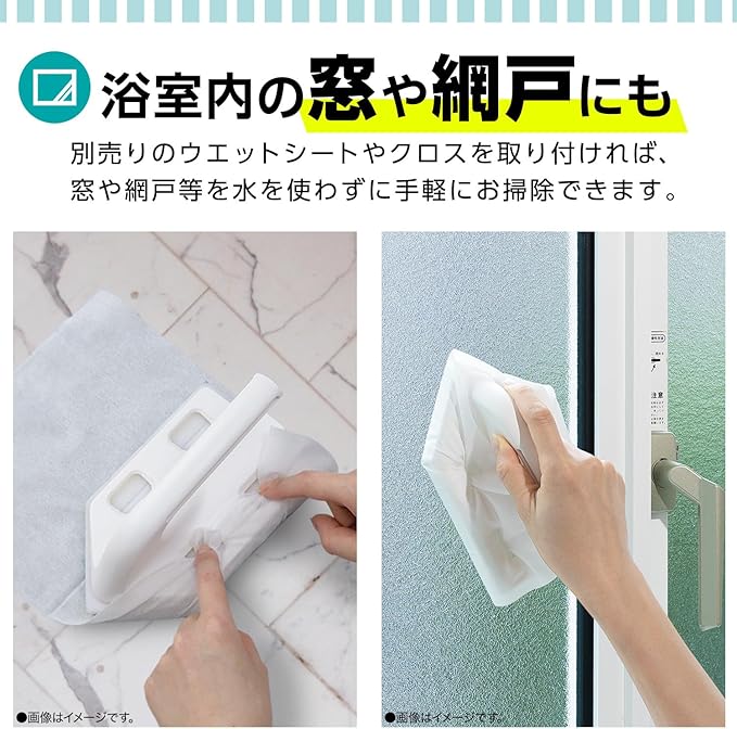 掃除用ウェットシートを取り付けることができるので、窓や網戸のお掃除にも使えます。