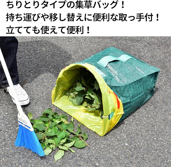 高儀(Takagi) TAKAGI ちりとり集草バッグ 60L 取っ手付 耐荷重 約15kg 落ち葉 除草後の草集め 45Lのゴミ袋をセットできる 袋留め クリップ 4個付属 たかぎ
