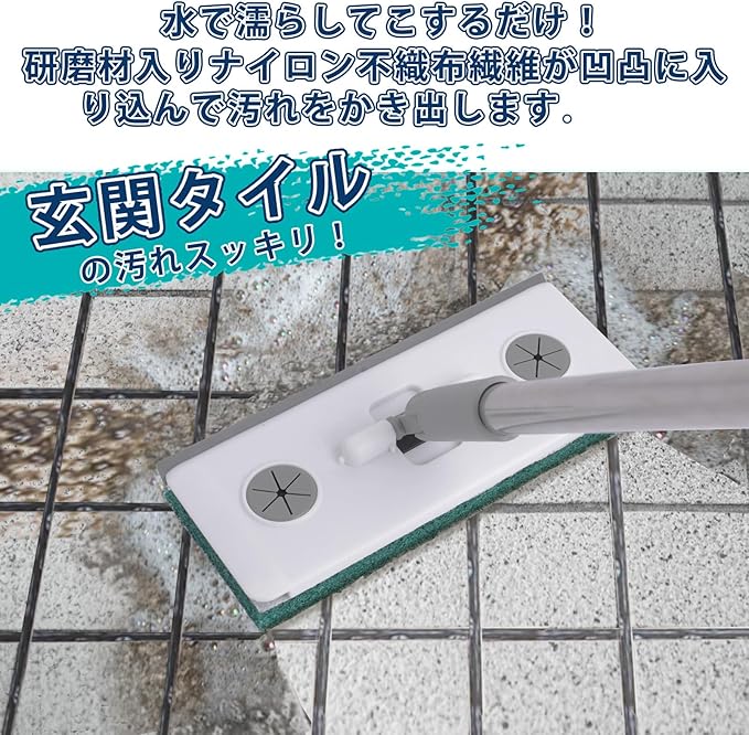 【水で濡らして汚れをスッキリ落とす】ナイロン不織布製のブラシスポンジに研磨粒子を塗布したので、タイルに付いたの固い汚れをスッキリ落とします。玄関、外壁、ベランダなどのお掃除に適用です。