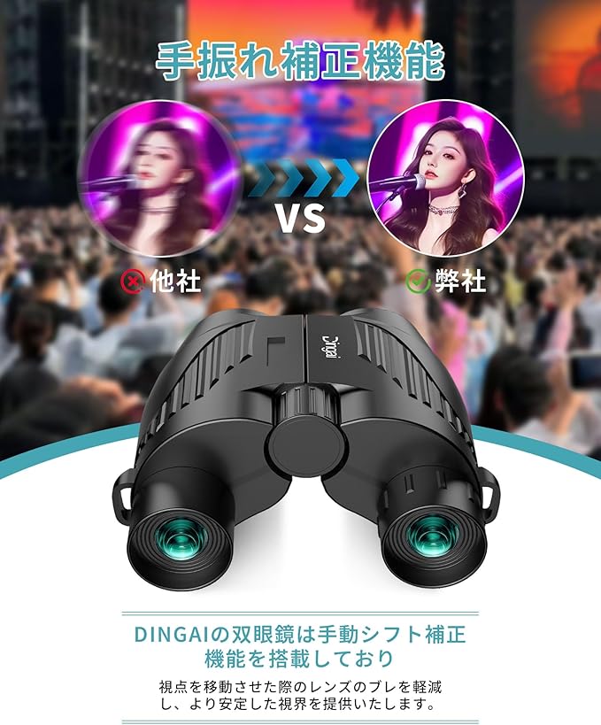 【IPX7防水・防塵・防カビ&手振れ補正機能】どんな過酷な環境でも安心のIPX7等級防水・防塵・防カビ設計!雨の日のアウトドアや砂埃の多い現場でも安心して使用可能。さらに手振れ補正機能を搭載しているため、移動中でもブレのない鮮明な映像をしっかりキャッチ。旅行、登山、釣り、スポーツ観戦など、あらゆるシーンで安定したクリアな視界を提供します。長く使える高い耐久性と快適な操作性を兼ね備え、日常からアウトドアまで幅広く活躍する防振双眼鏡です。