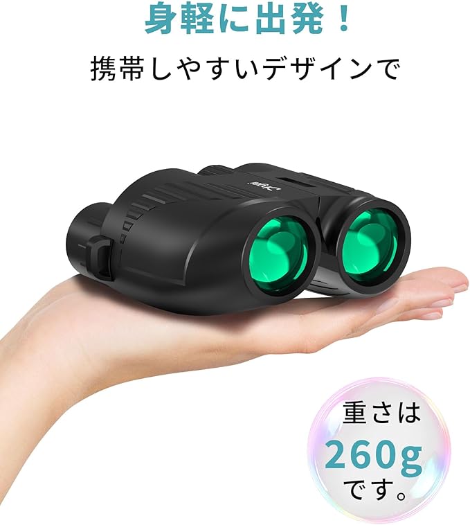 【小型・軽量&ピント合わせも簡単】小型・軽量設計により片手でサッと取り出せるライブ 双眼鏡。重量はわずか260gです。バッグやコートのポケットにも収まり、旅行や通勤、花見・祭り・スポーツ観戦など「思い立ったらすぐ使いたい」シーンで抜群の機動力を発揮します。ピント合わせは直感的な操作でワンアクション、初心者やご年配の方でも短時間でクリアな視界に到達できるため、大切な瞬間を見逃しません。軽さは長時間使用の疲労を軽減し、持ち歩きやすさと使いやすさを両立。日常使いからアウトドアまで、手軽に高品位な観察体験を提供する一台です。