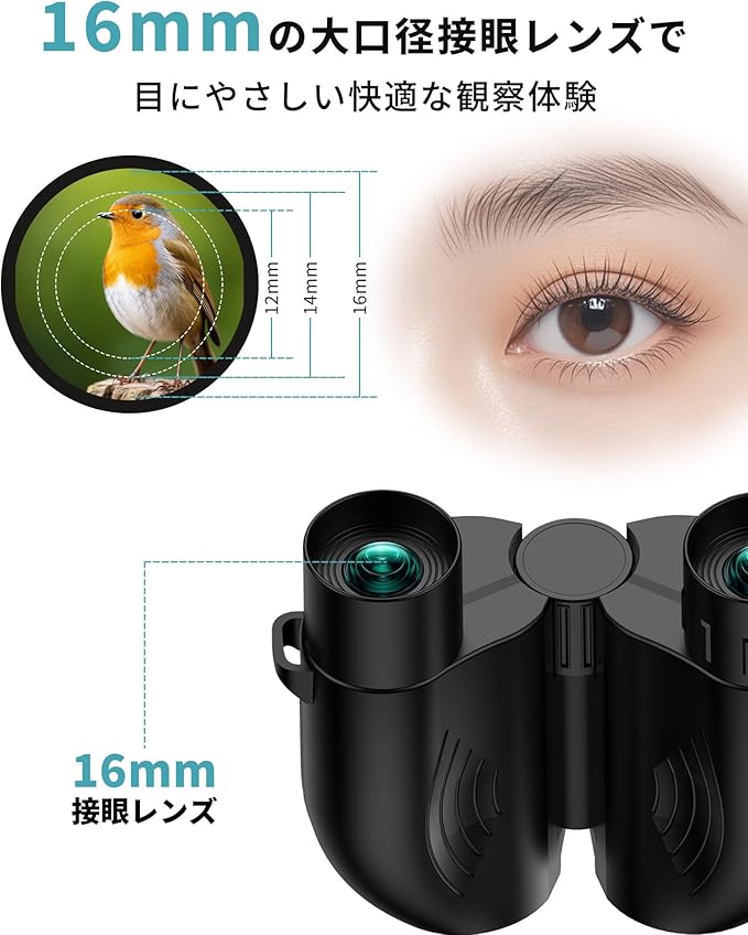 【新研究開発の大ロ径レンズライブ用双眼鏡&20倍高倍率に】お客様により優れた観覧体験をお届けするため、新開発の大口径・高倍率双眼鏡がついに登場いたしました。25mmの大口径対物レンズがより多くの光を取り込み、暗めの会場でも明るくクリアな映像を実現します。さらに16mmの大口径接眼レンズにより広い視野を確保し、迫力ある映像を快適に鑑賞可能。高倍率設計で遠くの被写体も鮮明に観察でき、ライブやコンサート、観劇、スポーツ観戦はもちろん、旅行やアウトドア、野鳥観察など幅広いシーンで活躍する高性能双眼鏡です。