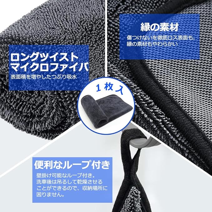 【洗車 タオル&素材】洗車タオル素材ングツイストマイクロファイバーで織られたタオル、繊維が細かいため水分をスッと吸収できます。投げかぶせて軽く引っ張る!車体、バイク、ガラス、プラスチックなどの表面をさっと拭くだけで水分を速やかに拭き取ることが可能です,ふんわりなめらかタッチで汚れを拭き取り、車や家具に傷を付けません。