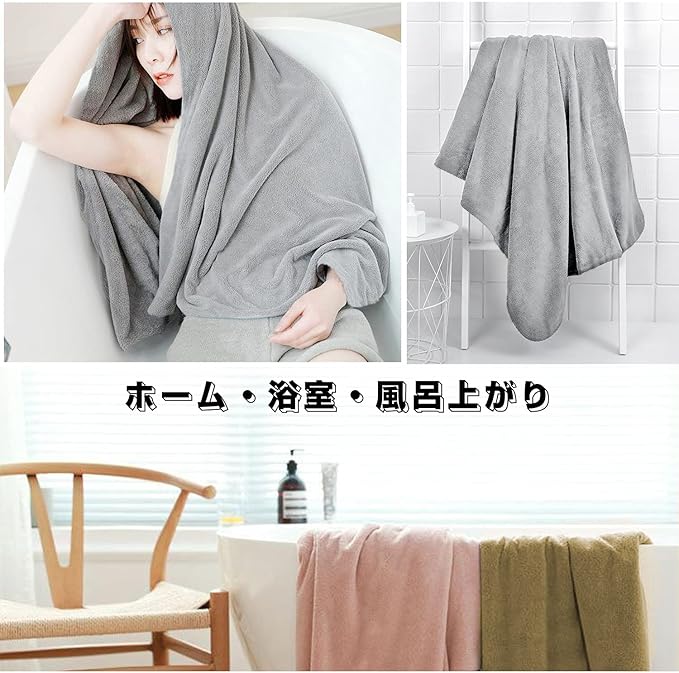 【抜群な吸水力】マイクロファイバーで作られていますので、吸水力は綿より3倍以上優れるところは誇りになる性能を持つ。繊維に多くの隙間があり、直径8マイクロメートル以下、髪の毛の100分の1以下という細さで素早く水を吸収します。なめらかな手触りと吸水性能と速乾性能の速さがかがやくポイント。身体を包み込むように羽織るだけでしっかり吸水します。