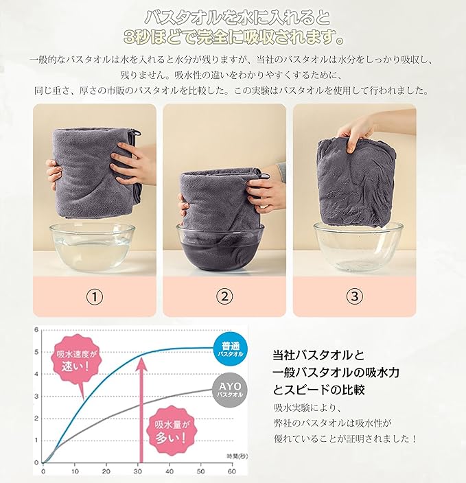 【マイクロファイバー素材】丁寧に織り上げた高品質極細繊維です。一般的なマイクロフアイバ-のタオルと比ベて約2倍以上のボリュ-ムがあり、ふんわりと包み込まれるようなリッチな使い心地。両面ともに厚手なのが機能性がさらにアップです!特徴:吸水速乾、軽量、糸抜け防止、通気性が強い、静電気なし、蛍光なし。想像を超えるふわっふわの触り心地なので、大人だけでなく敏の肌も每日を心地よく包みこみます。