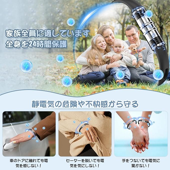 【長い作業時間&静電気除去効果up】室内でも室外でも、この静電気防止ブレスレットが静電気から効果的に保護してくれ、知らず知らずのうちに静電気の悩みを解決します。静電気除去効果は個人差があり、通常2~3週間持続します。装着時間が長いほど、効果はより優れます。このブレスレットは大量のマイナスイオンを放出し、マイナスイオンの電流平衡機能で正負の電荷を平衡させることができます。長期的に装着すると、睡眠質を向上、体のバランス改善、仕事のストレス緩和を補助することができ、実用性が満点です。