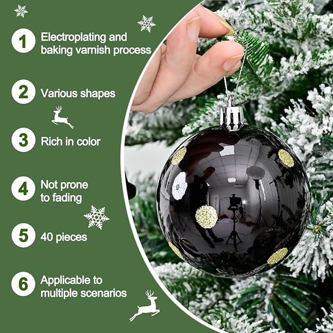 ★ 【製品仕様】セット内容:クリスマスオーナメント40pcs入り、サイズ:4㎝~8cm、カラー:ブラックとゴールドとホワイト、材質:プラスチック。